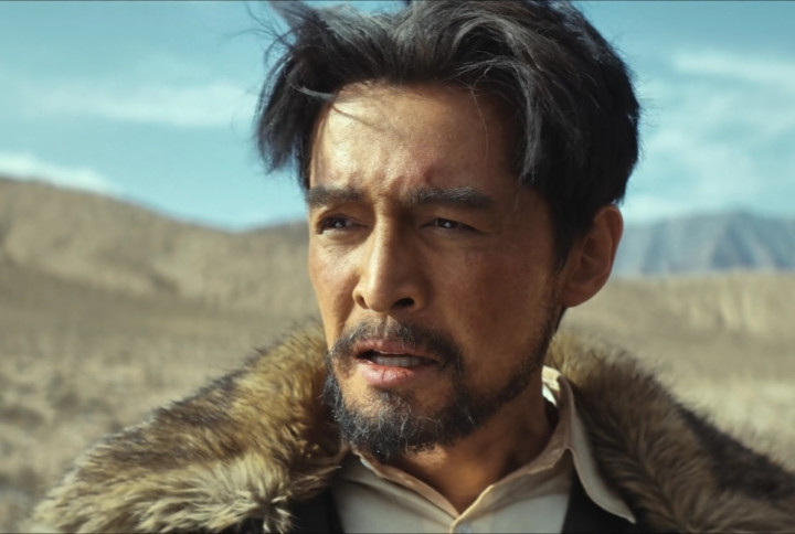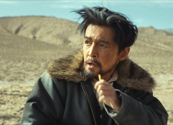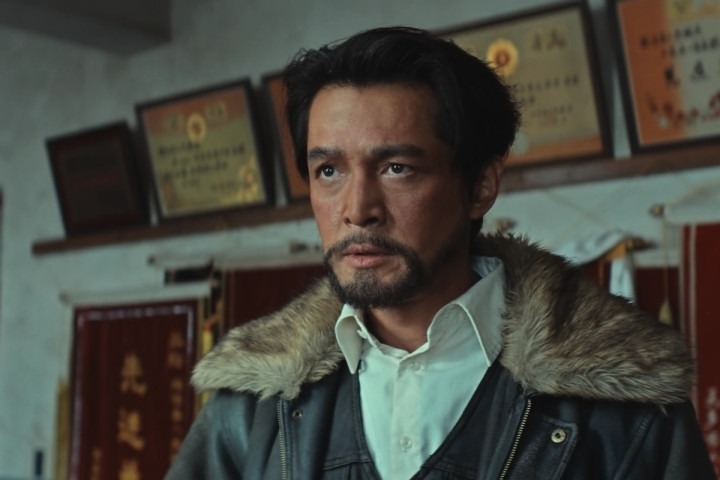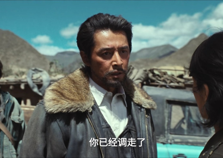 出场时顶着乱糟糟的头发,骑着摩托车,泛红又粗糙的脸上,立马多了几分被藏地风沙掠过的粗糙感。