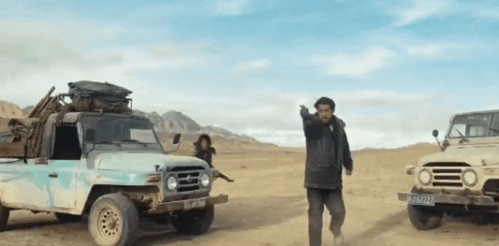 等到盗猎分子上车离开时,多杰(胡歌饰演)瞅准时机迅速出击,打掉了领头的一根手指头。
