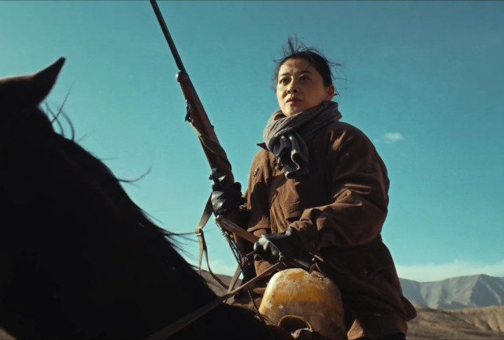 出场时一身白大褂,是救死扶伤,心有慈悲的医生。但骑着马手持猎枪教训儿子的那场戏,却是英姿飒爽,很有女英雄的风范。